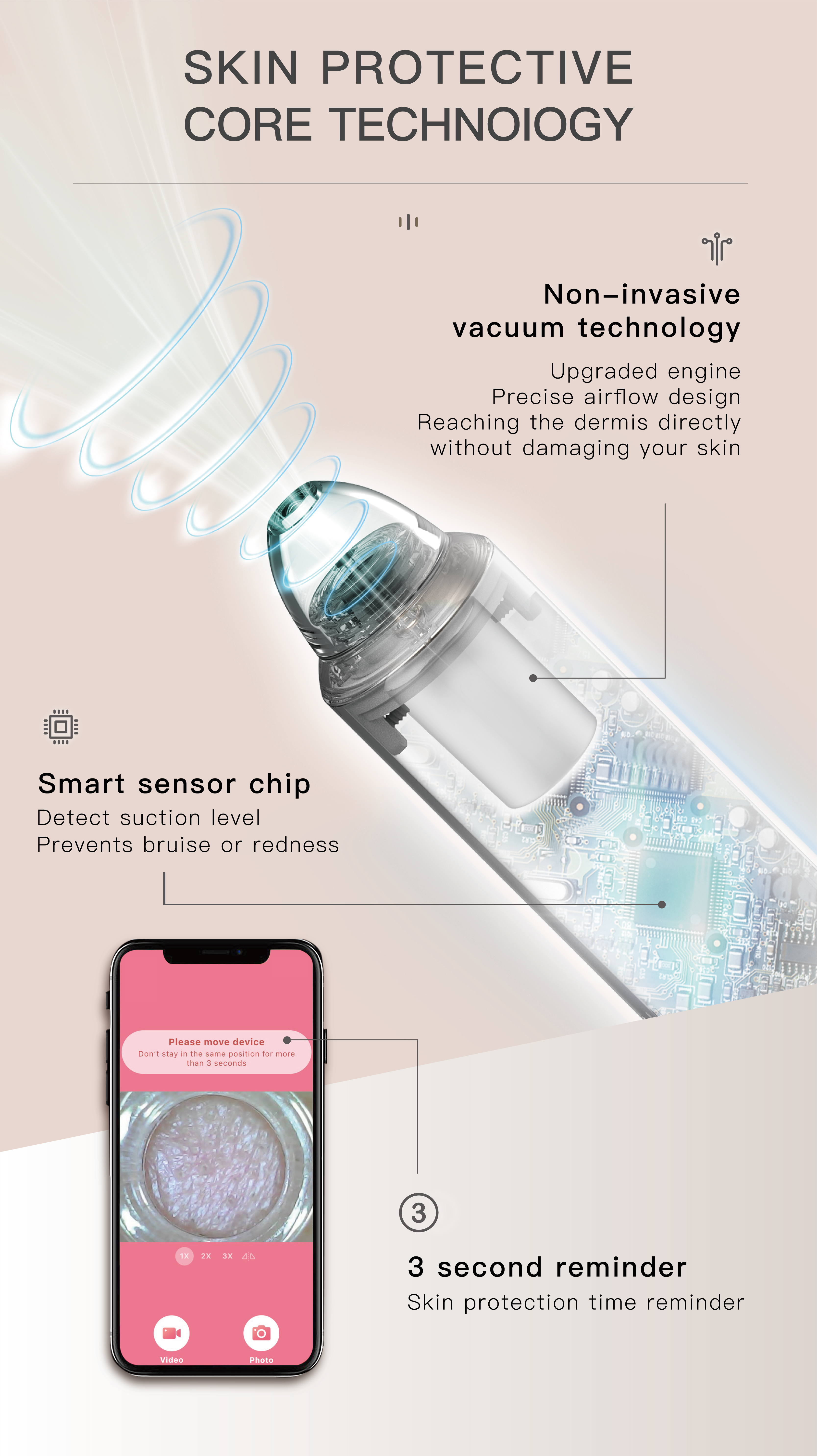 No more harm on pores, bruising and redness |Smart sensor chip, 3-second reminder for stay time