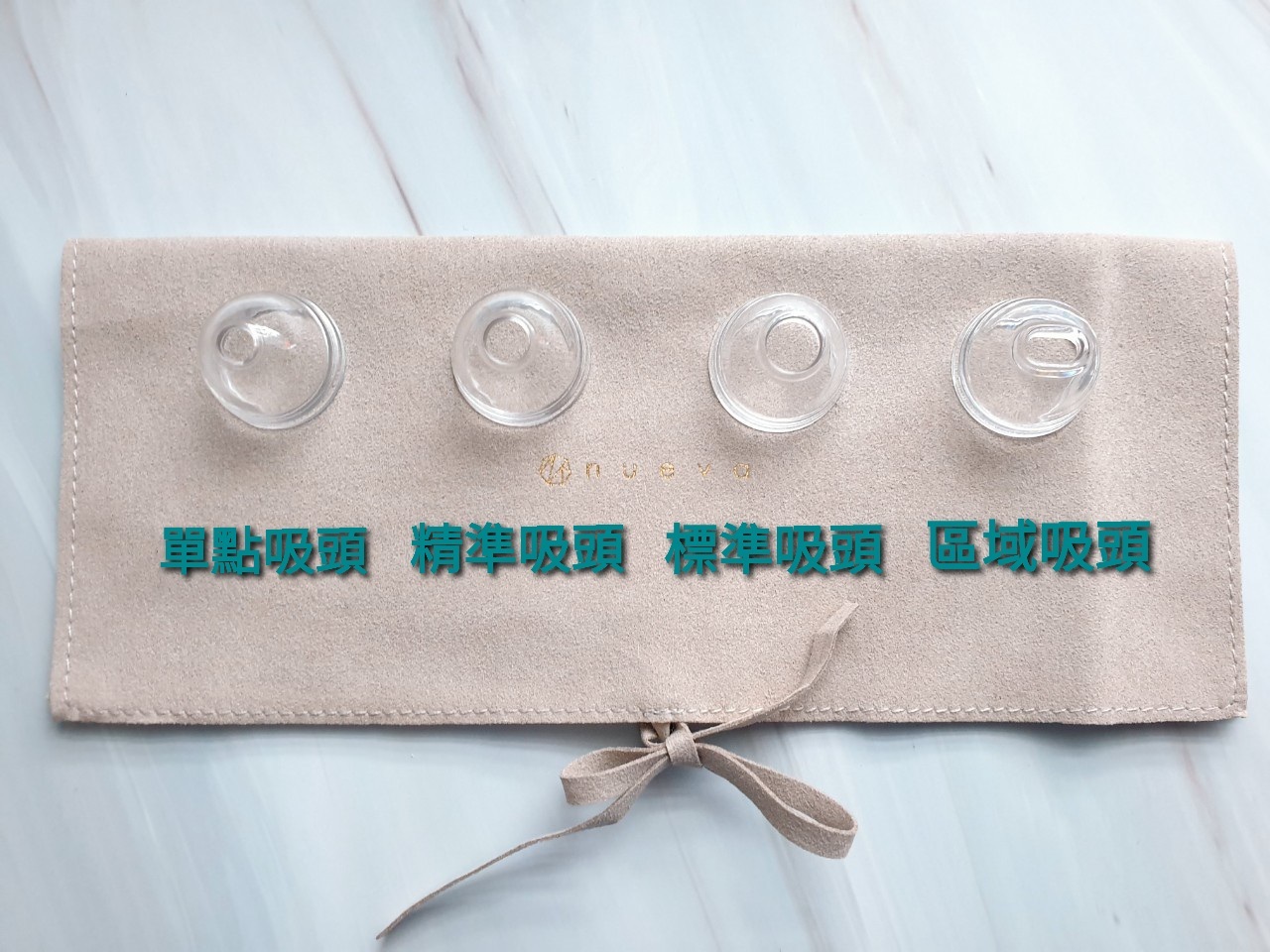 NUEVA粉刺機附有4款晶透吸頭,由左➡️右分別是: