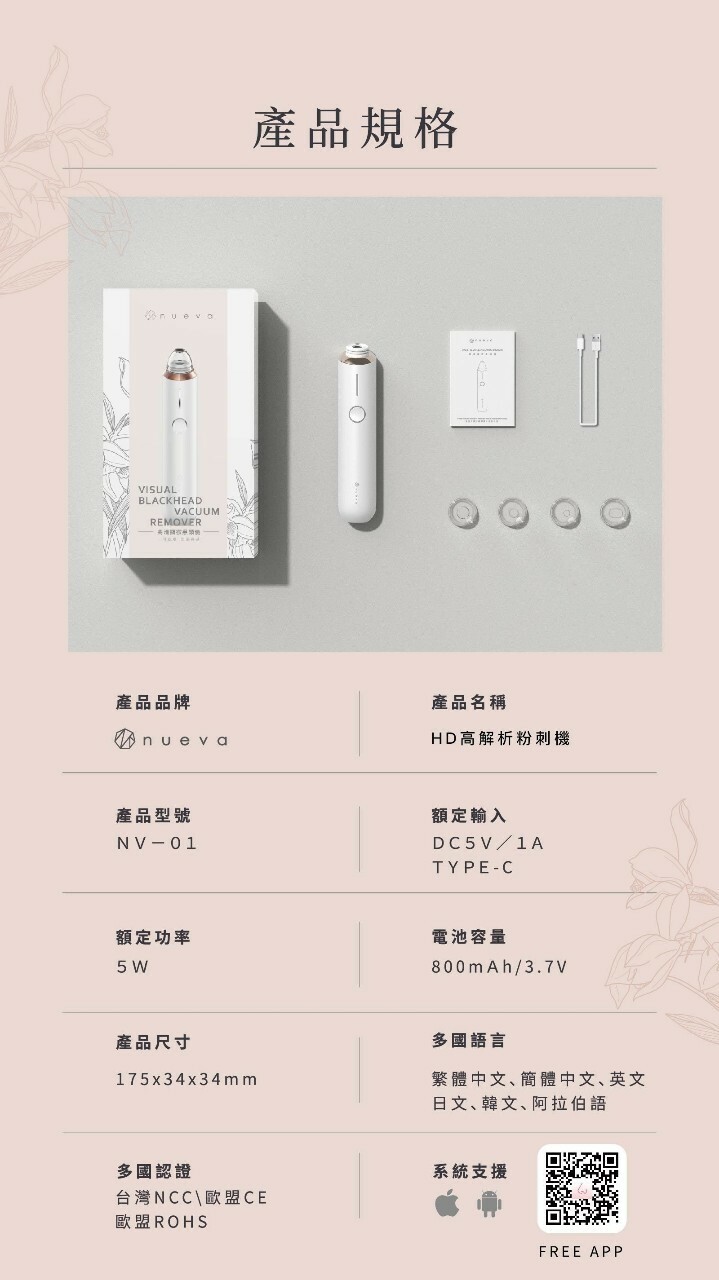 備有60倍高清 200萬畫素的高解析NUEVA粉刺機,連線專屬APP後就能即視即吸!