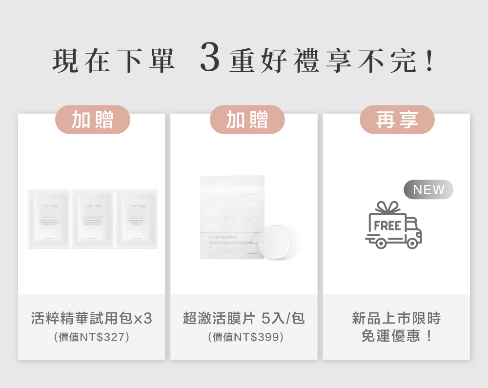 🔆買美容儀送 補水急救站、油光殺手、皺紋終結者試用包*2 (隨機贈送)